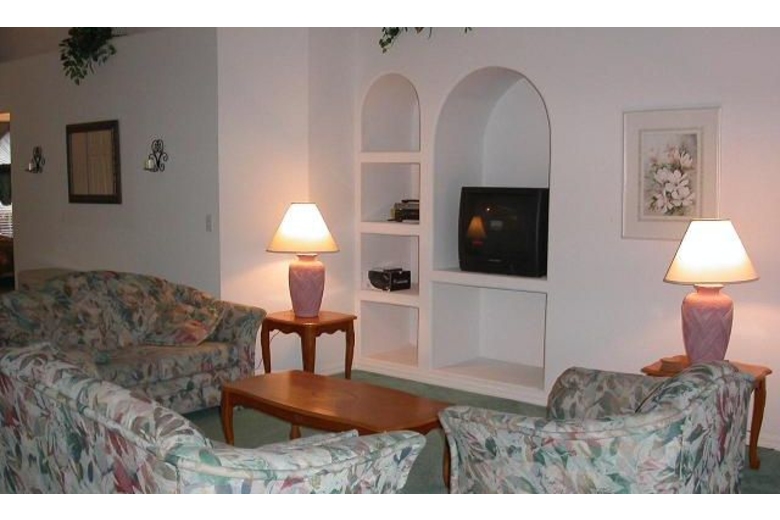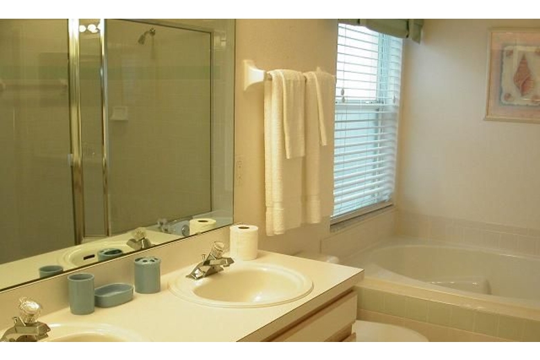 Tastefully furnished 4 bedroom, 3 full bath villa, very spacious with 1800+ sq ftliving space offers extra large kitchen with dining area, family room, two cargarage and a private south facing heatable screened pool. Accommodates up to 10people comfortably. The villa has two master suites, each with generous en-suite facilities, perfectfor two families vacationing together. Each en-suite bathroom has walk-incloset, double vanity units, garden tub and separate glass enclosed shower.Rather than waiting for your turn to wash in the morning, you can get out of thedoor fast to explore what you enjoy most. The 3rd and 4th bedrooms each opensdirectly onto the 3rd bathroom, which has double vanity units and a bath tub.There is one king-size bed, one queen-size bed and 4 twin beds. The convertiblesofa in the family room can sleep additional two people when needed. The villa has a two-car garage where you will also find everything for yourlaundry needs - washer, dryer, iron and ironing board.For the ultimate in outdoor relaxation, head for the covered lanai that isfitted with plush patio furniture and the private screened pool that can beheated at your option. Additionally, there is aBBQ grill that you can use to enjoy your favorite summer BBQ without missingFlorida's outdoor fun.Surrounding Description