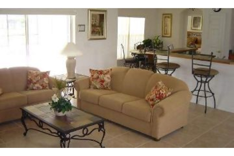 With 3 bedrooms, 2 baths this home has a fully equipped kitchen including microwave plus washer and dryer, a formal dining area and breakfast bar, TV, DVD and DVD library, stereo CD, den with X-Box, game room with pool table, electronic dart board, foosball table and a children's ball pit plus fully screened, private pool and hot tub.Surrounding Description