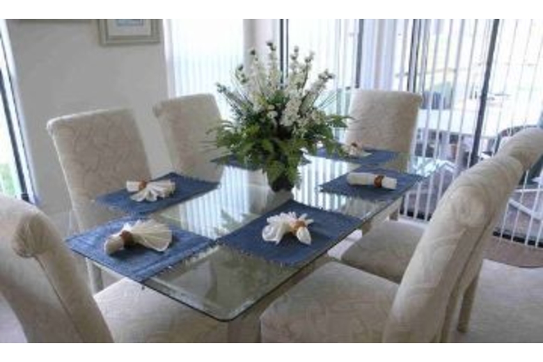 This 5 bedroom, 3.5 bath home has a fully equipped kitchen with a microwave for quick meals or snacks, washer, dryer, a formal dining area and breakfast bar, satellite TV, DVD, stereo, computer with internet access, Playstation 2, game room with air hockey, pool and ping pong tables plus a fully screened, private pool and Jacuzzi.Surrounding Description