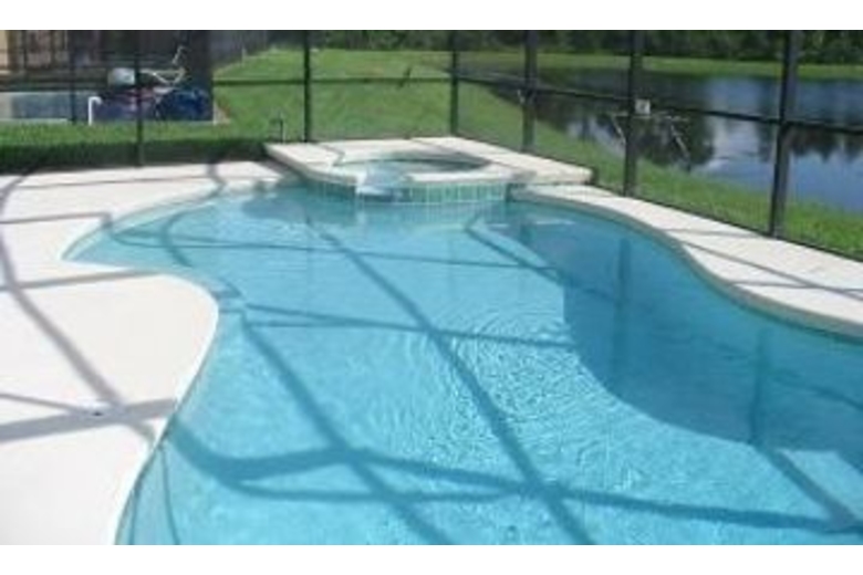 This villa has a great lake view. There is also a private screened in pool and hot tub. There is an excellent furniture package and lots of extras. The community has a playground.Surrounding Description
