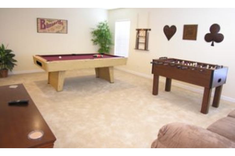 This is a beautifully decorated and furnished home has all the things you want to provide your stay with comfort. With 5 bedrooms and 3 1/2 baths you can sleep 12 people quite nicely and still have lots of room to entertain, or enjoy the pool. It has an open floor plan and large game room with a pool table, foosball table, a TV with a VCR/DVD player and the house is equipped with high speed internet. The kitchen comes fully equipped for all your cooking needs, and you can eat around the bar, in the dining room, or out by the pool.Surrounding Description