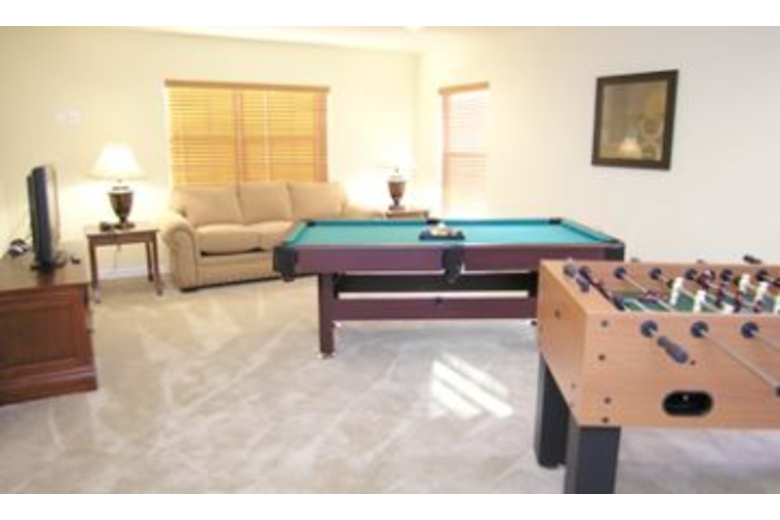 This home has all the latest features and beautiful furnishings so you will bw right at home here. There are flat screen TV's throughout the home with cable and DVD players. You have an air conditioned game room, that has a pool table, a foosball table, and games consol to enhance your stay. There is a pool/spa right out side, and you have high speed internet access as well. The kitchen comes with all the amenities so you can enjoy eating at home, or try one of the nearby restaurants.Surrounding Description