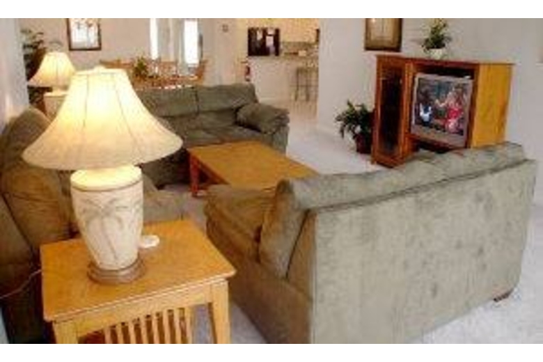 This five bedroom, four bathroom home is less than fifteen minutesfrom Disney World. This home has a washer and dryer, ceiling fans,TV, DVD player, stereo, playstation, board games, pool, hot tub andgarage.Surrounding Description