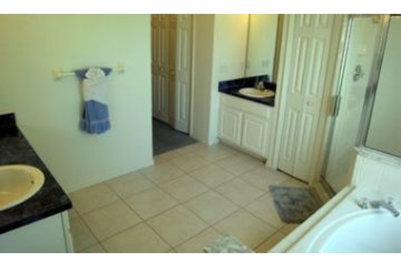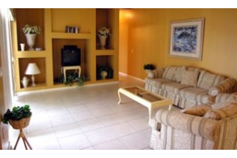 This home features bright colors in the main living area, and different colors and moods in the bedrooms. You can find the room that's just right for you! Take advantage of the opportunity to dine in with the fully equipped kitchen and dining area for six. There are tile floor throughout the house. Enjoy the pool and spa after a long day of play at the parks!Surrounding Description