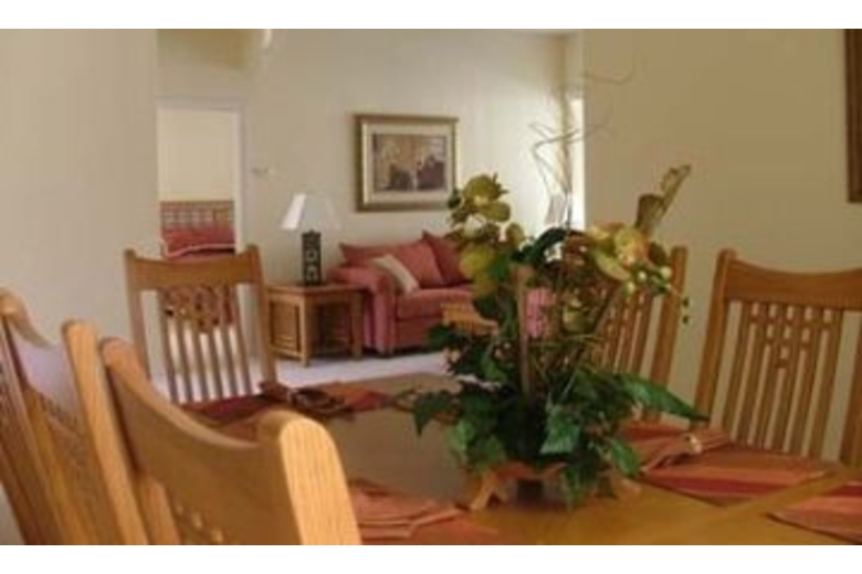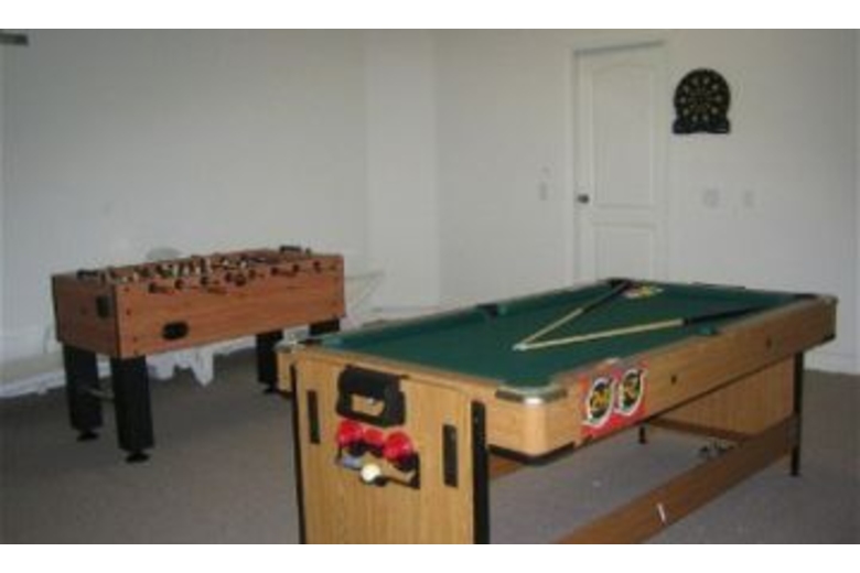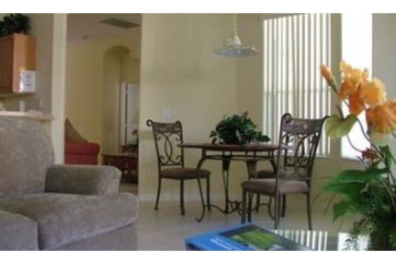 This fantastic five bedroom and four bathroom villa is spacious and luxurious boating two master suites each with a king bed and an en-suite bathroom. The third bedroom has a queen bed, bedrooms four and five have two twin beds each. The kitchen, breakfast nook, and dining flow into to each other bringing a large open feel to the room. Complete with all the modern appliances, and other essentials makes you feel right at home during your stay. The living room is comfortable and offers style and sophistication while adding a nice spacious, airy feel to it. Amenities include cable TV, DVD player, CD player, garage, air conditioning, a game room with pool tables, and washer and dryer. Sit out on in the back yard and relax after a long day of adventures at the theme parks and watch the sun set and the stars come out while enjoying the company of your guests.Surrounding Description