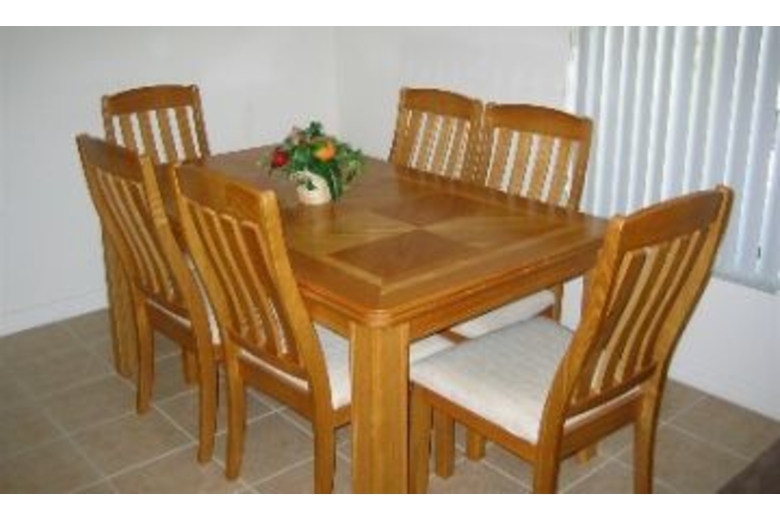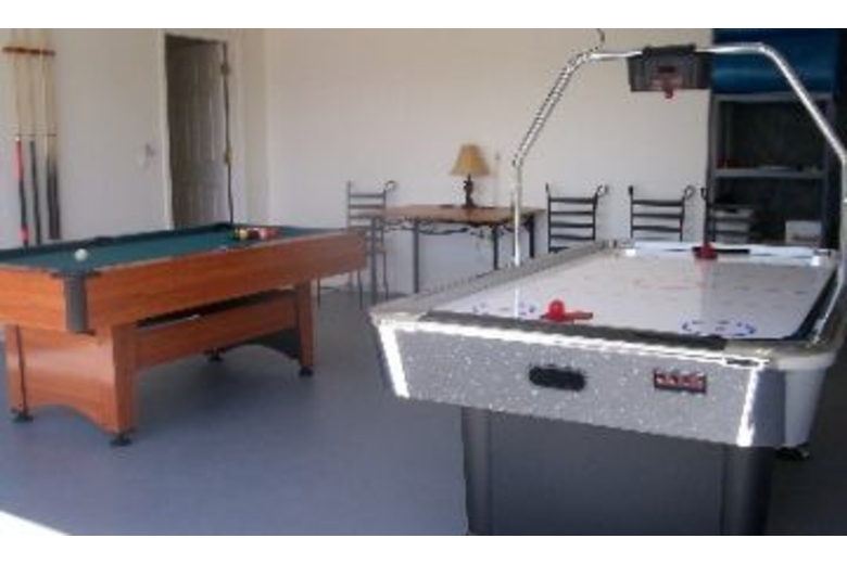 This four bed three and a half bath home is comfortably furnished throughout and offers all the amenities of home plus more! It features a spacious living room, dining area and fully equipped kitchen with breakfast bar, washer/dryer and game room offering air hockey and a pool table. Guests also have access to TV, VCR, Nintendo Game Cube and stereo system in the living room and cable TV. The master bedroom suite offers a king size bed with TV, VCR, two closets and a bathroom suite. The second bedroom offers a queen bed, TV, DVD player and X-Box Game System and a private bathroom. The third and fourth bedrooms each containing two twin beds and are separated by a Jack & Jill bathroom. Relax in the enclosed rear patio, offering both sun and shade, accessible by sliding glass patio doors from both living room and master bedroom. It is fully furnished with plenty of seating and dining area, has a gas bar-b-que, outdoor shower, full-size in-ground pool (heating available) with attached spa and a half bath located poolside. There is room for four cars in driveway.Surrounding Description