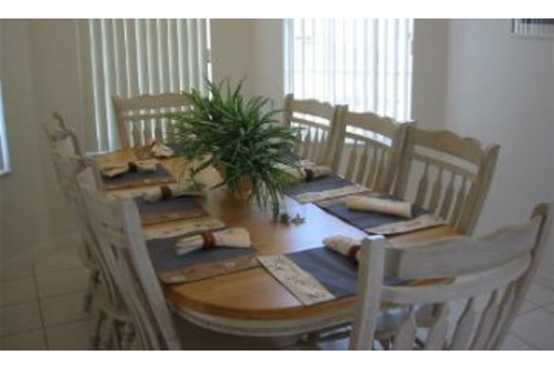 This brand new, nicely furnished four bed three bath villa offers the comforts of home in a vacation setting. Bedding includes a queen bed in each master suite, two twin beds each in the third and fourth bedroom and a sleeper sofa in the living area. It has a fully equipped kitchen, dining set, washer/dryer, a spacious living room, five TV's, a DVD/CD player and two Playstations for your entertainment. Guests also have full access to our Concierge and Cyber café located at our office. Enjoy the Florida Sun outdoors either swimming in the screened pool, relaxing on a lounge chair or dining at the covered patio. A great place to spend time together!Surrounding Description