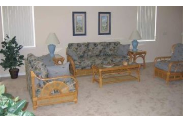 Dux Villa is a beautiful two story home, with four bedrooms and three and a half bathrooms which accommodates ten guests comfortably. Attractively furnished, it features a spacious living room, dining area, full kitchen, washer/dryer, linens and towels, three TV's, a DVD/CD player and Cable TV. There are two master suites, one with a king bed and the other a queen bed, both with en-suite bathrooms - making it ideal for a two family vacation. The third and fourth bedrooms have two twin beds each, and there's a double sleeper sofa in the living room. Enjoy the Florida Sunshine from your own patio, a great place to dine, read a book or simply relax. The screened-in pool and spa are south facing, perfect for fun in the sun at the end of an exciting day at the local attractions.Surrounding Description