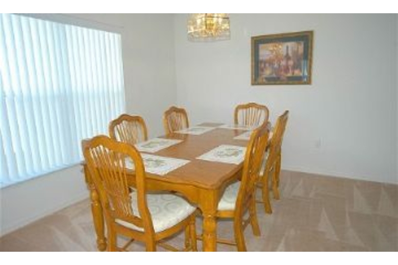 The Carlton has 4 bedrooms, featuring 2 master-suites which are similar in size, making it ideal for 2 families. Each has walk in closets, clock radio, hair dryer and color cable TV. The en-suites have shower/tub and each have direct access to the shaded lanai and pool area. The 2 further bedrooms share the 3rd bathroom. A crib, highchair and baby monitor are provided free of charge. The villa has an extended south facing pool and deck area. The Carlton also offers a privacy fence. If you need to escape the hot Florida sunshine you can relax under the shaded lanai. Removable pool fencing is provided for your children`s safety. This can easily be stored away if not required, but will provide peace of mind for families with young children playing in the pool area. There is a fully equipped kitchen and laundry room, which over looks the family room and dinning room. The family room has cable TV, VCR, DVD player, Hi Fi Stereo System and a PlayStation 2 system. There is also a game room which features a 7 foot Pool Table, Electronic Darts and an Air Hockey Table. We have also added a computer with dial up connection, so that you can check your emails when you are with us.Surrounding Description