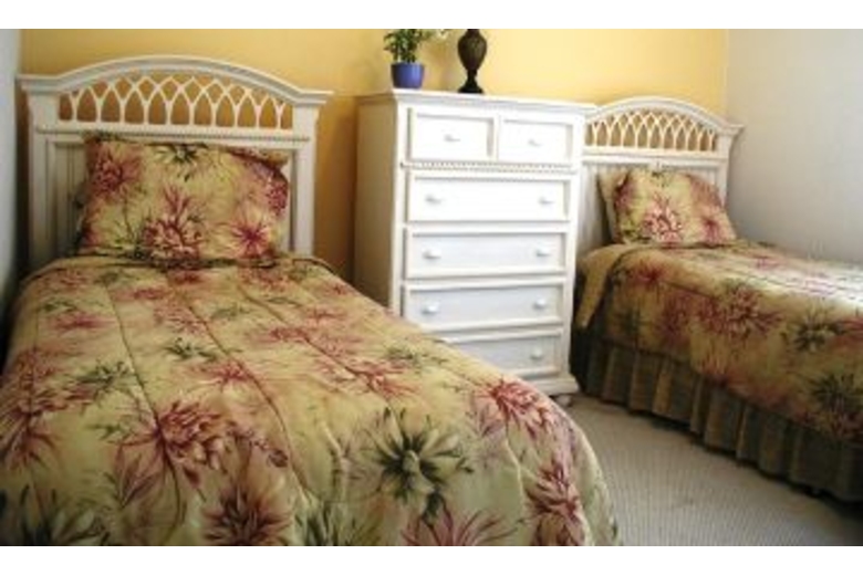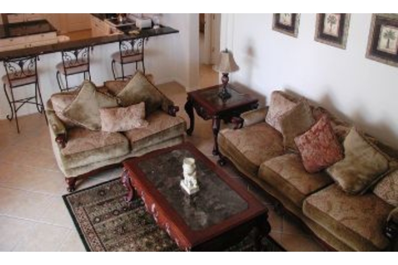 In this luxurious home the 2 masters have King beds. Bedroom number 3 has a Queen Size bed. Bedroom number 4 has a spacious full size bed. Bedrooms 5 and 6 each have two twin beds in them. Your home has a wonderful relaxing Jacuzzi attached to the pool. It's fully furnished for your enjoyment. Gourmet kitchen, 2 masters, 2 social areas, dining room, large pool & deck which is partially covered