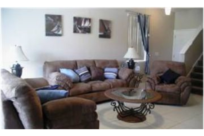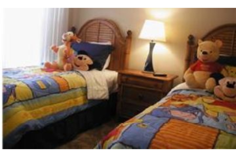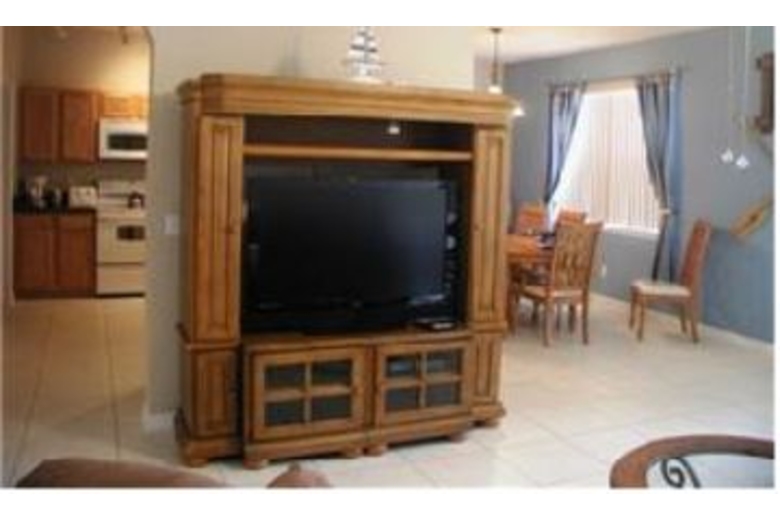 The 4 bedroom 3.5 bath villa at Sandy Ridge has every possible comfort needed. With its over sized bedrooms and practical layout you and your family will be sure to remember this vacation for years to come. A constant nautical theme runs throughout the downstairs living area. The family room features a 42" LCD HDTV and connects to your fully loaded kitchen. The dining room can accommodate up to 8 for a family meal after a long day at the parks. Everyone can wind down for the evening with a movie since every room has there own 19" LCD TV with DVD player. For your added convenience sliding glass doors open up from the family room to overlook your screened in patio, pool and spa. Master Bedroom features 1 King, Bedroom 2: Queen, Bedroom 3: Two Twins, Bedroom 4: Two Twins. This property will sleep 10 people.Surrounding Description