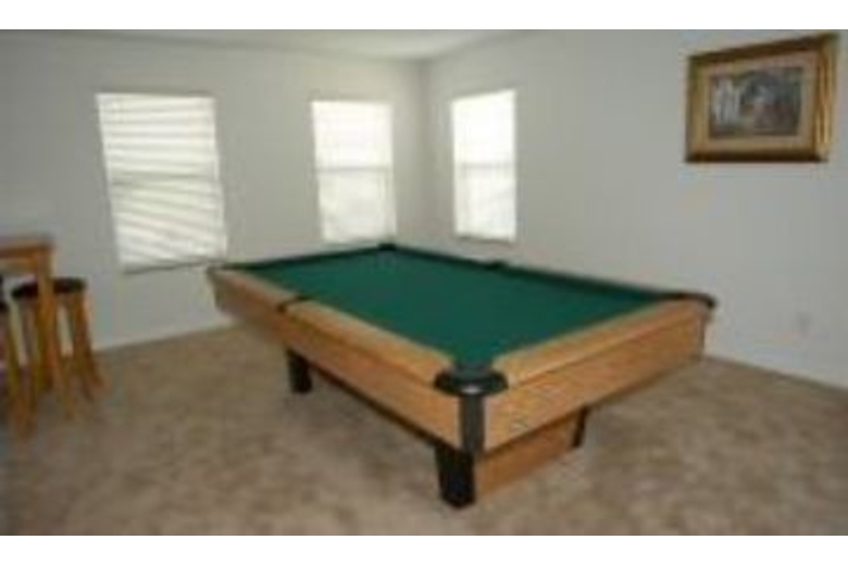 Our villa has five Luxury Bedrooms on two floors, three of the bedrooms are master suites, one of the smaller master suites is on the ground floor, all masters have walk in closets, and en-suite bathrooms. The open plan living room and dining area is decorated and furnished in a typical bright Floridian style, there is a separate Family Room overlooking the pool area with comfortable seating. The open plan living room and dining area is decorated and furnished in a typical bright Floridian style, there is a separate Family Room overlooking the pool area with comfortable seating. A large six setting dining room suite provides ample space for indoor family dining. On the first floor there is a large games room/lounge area complete with pool table.Surrounding Description