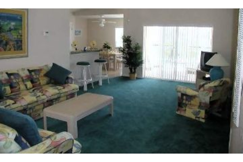 With 3 bedrooms, 3 baths this home has a fully equipped kitchen including microwave plus washer and dryer, a formal dining area and breakfast bar, cable TV, VCR/DVD, game room with pool and foosball tables plus fully screened, private pool with lake view.Surrounding Description