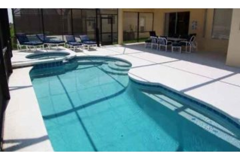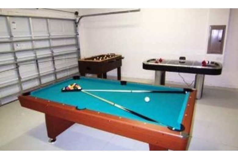 This 4 bedroom home, with twin master suites including full, private bathrooms, has a fully equipped kitchen with microwave, washer, dryer, cable TV, DVD player, stereo, computer with high speed internet access, Playstation 2, game room with air hockey, pool and foosball tables plus a fully screened, private pool and hot tub.Surrounding Description