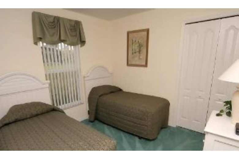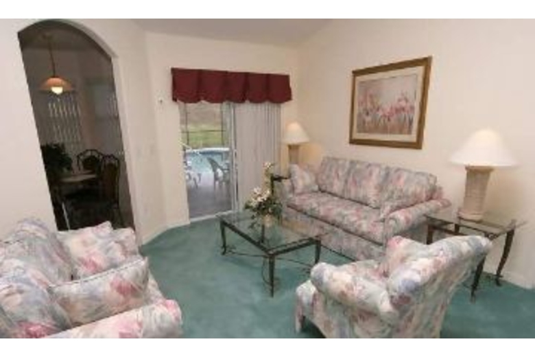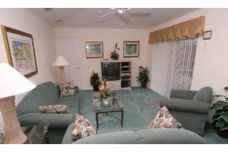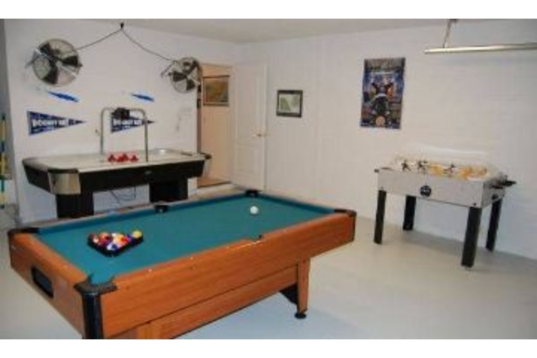 This 4 bedroom home, with twin master suites including full, private bathrooms, has a fully equipped kitchen with microwave, washer, dryer, a formal dining area and breakfast nook, cable TV, DVD, VCR, game room with air hockey, pool and foosball tables, X-Box and games plus a fully screened, private pool and Jacuzzi.Surrounding Description