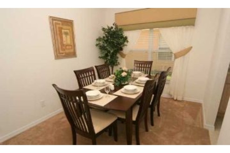 This 5 bedroom home, with twin master suites including full, private bathrooms, has a fully equipped kitchen with microwave for quick meals or snacks, washer, dryer, cable TV, DVD, internet access, game room with table tennis, pool and foosball tables plus a fully screened, private pool, hot tub and patio.Surrounding Description