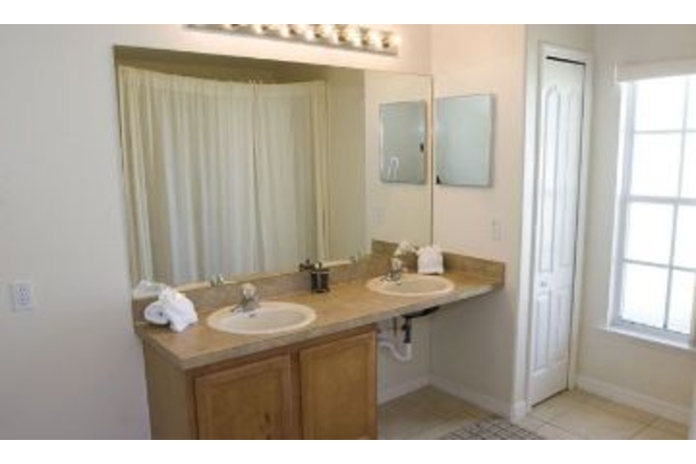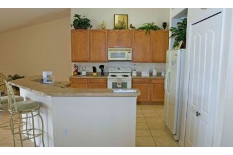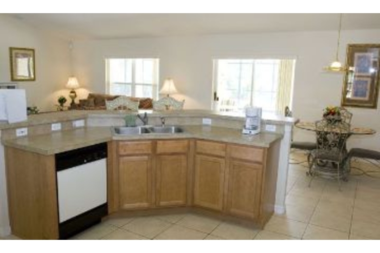 This villa has many features including ramped entrances and extra wide 32" doorways throughout. On entering the villa the entrance hall leads into a formal sitting room offering a relaxing, elegant and comfortable environment. Adjacent to the sitting room is the formal dining room. The center of the villa hosts a huge open plan family room where adults can watch children in the TV area.The kitchen contains everything you may need away from home including oven, microwave, dishwasher, freezer, fridge with ice machine and even a blender. The utility room hosts a large washing machine and tumble dryer so you can wash the few clothes you take with you, leaving plenty of suitcase space for the goodies you take home.Surrounding Description