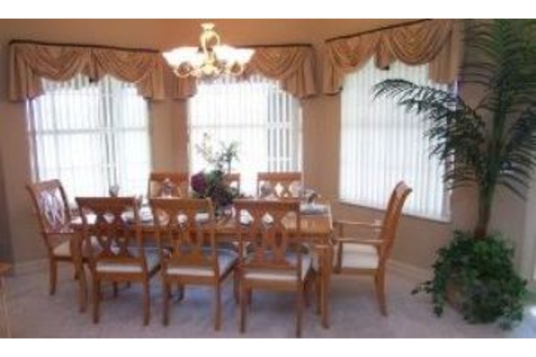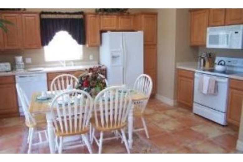 From your entry to the living area, which is fully furnished with entertainment center and comfortable seating, to its dining room- no luxury is spared in making this home delightful and warm. The kitchen is well equipped with every modern convenience and has its own breakfast nook to provide additional seating. One of the master bedrooms is located on the ground floor and it is tastefully decorated. The other master suite is located on the first floor and comes with his and her bath robes and slippers to bathe you in luxury. The other 3 bedrooms are just as elegant, with wall pictures, linens, coverings and are fully carpeted.Surrounding Description