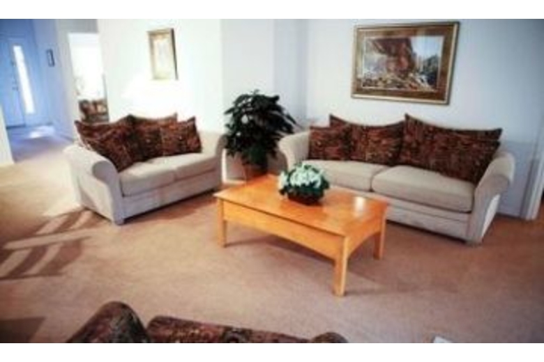 This contemporary vacation home features a community pool and playground, two golf courses and is just minutes away from area attractions, restaurants and shopping. Comfortable furnishings, spacious rooms and a screened-in, private pool await you.