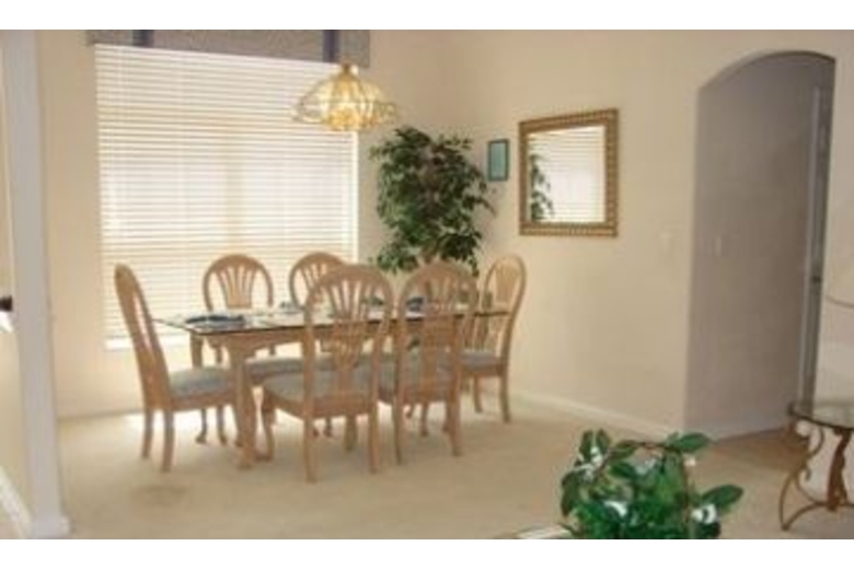 This lovely vacation home is located in the premier subdivision of Highlands Reserve, a golf course community freeway close to area attractions, restaurants and shopping. The screened-in swimming pool with spillover jacuzzi is made even more private with no rear neighbors.
