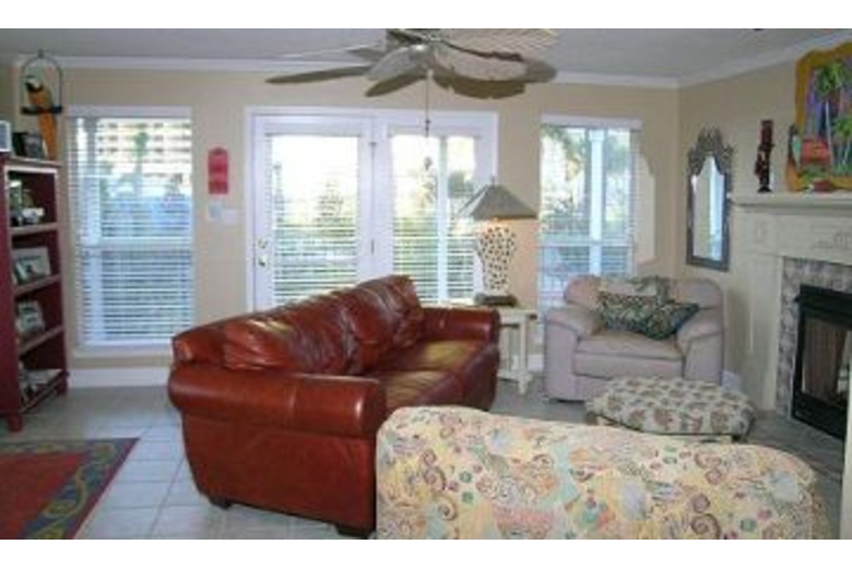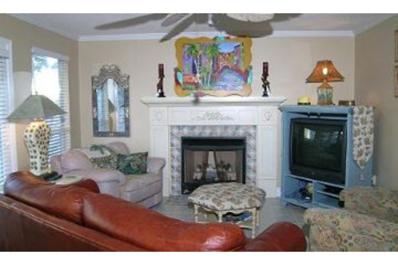 This home is beautifully decorated with exquisite color and furniture throughout. The living area has a fireplace and a large television, ideal if you want a quiet movie night at home. The kitchen is fully equipped with everything you will need to make meal preparation easy. There are 3 bedrooms, 3 bathrooms and sleeping for 8 people. The master bedroom has a king size bed and a private bathroom with a shower. The second bedroom has a queen size bed and french doors to access the patio. The third bedroom also has patio access and has two twins beds. The living area doubles as an additional bedroom with a queen sized sleeper sofa. Additionally, there is a stereo and a washer and dryer.Surrounding Description