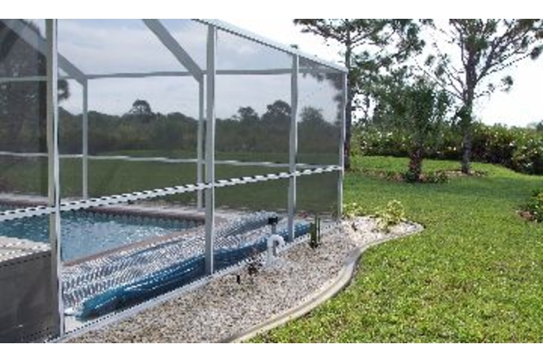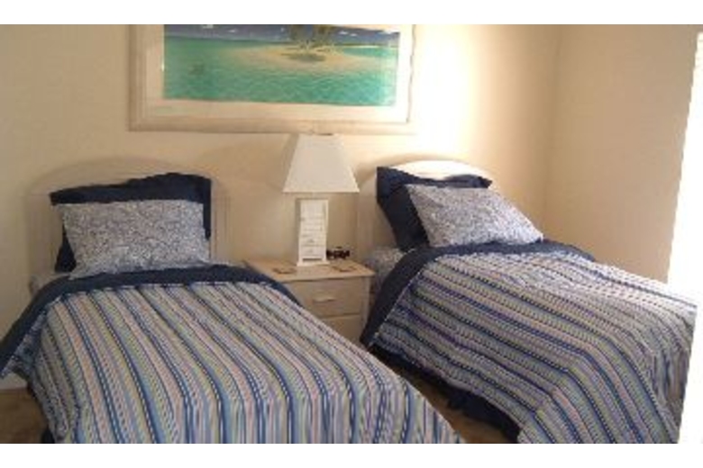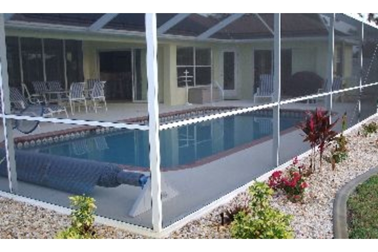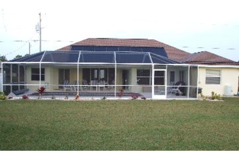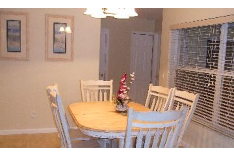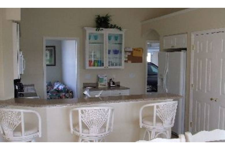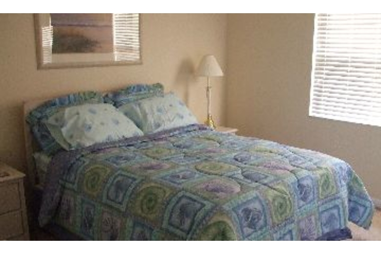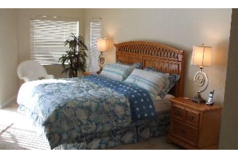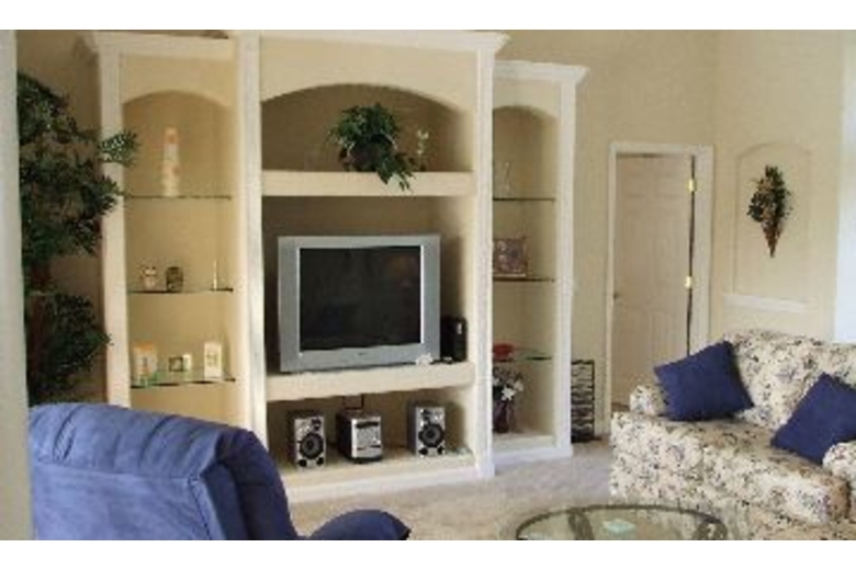 Great room / lounge contains 3 seater sofa, love seat and gents recliner, large 36" TC, USA & UK format DVD player and stereo sysyetm optional linked to speakers outside in sheleterd lanai. Master Bedroom is King size with TV, telephone, walk-in closet, ensuite with roman shower, wc , large bath tub plus his and hers vanity units. Second bedroom is Queen size with Tv and closet. Third bedroom is twin bedded with Tv and closet.Villa is in a very quiet, peaceful and trabquil location set on 1/3 acrea lot with a long rear garden/yard backing directly onto a nature reserve and not overlooked from the rear. Villa is funrnished in a typical welcoming, warm and relaxing Floridian style with numerous special features for the personal comfort of ourselves and renting guests.Surrounding Description