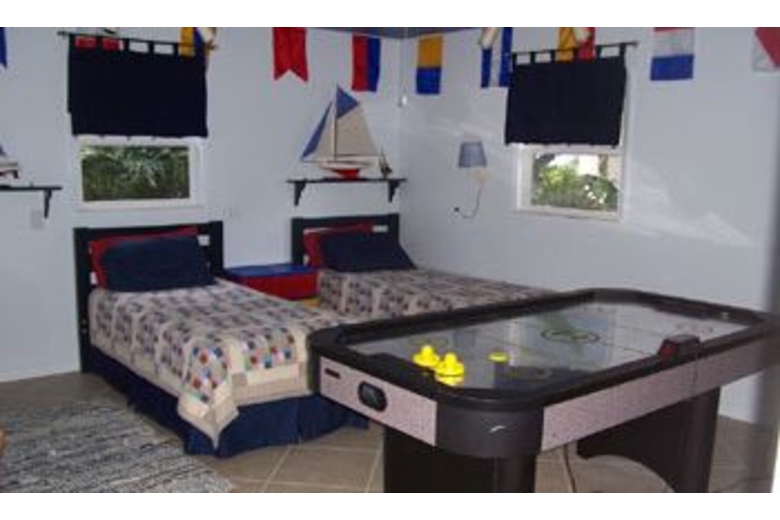 This four bedroom, two bathroom home is only three very short blocks from the sandy white beach. This home has a well equipped kitchen, ceiling fans, washer and dryer, high speed internet, cable TV, DVD, DVD movies, pool table, air hockey, large Jacuzzi and gas barbeque.Surrounding Description