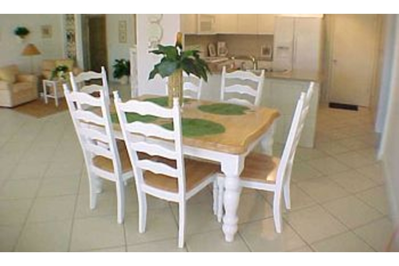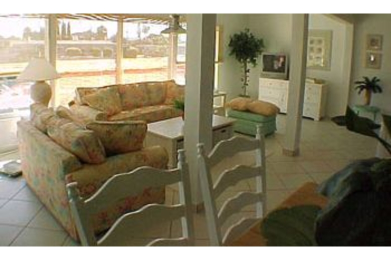 This three bedroom, two bathroom home has a well equipped kitchen, ceiling fans, washer and dryer, TV, DVD, stereo, Internet, pool. grill, boat dock and garage. Bedroom one has a king size bed. Bedroom two has a queen size bed. Bedroom three has two twin beds.Surrounding Description