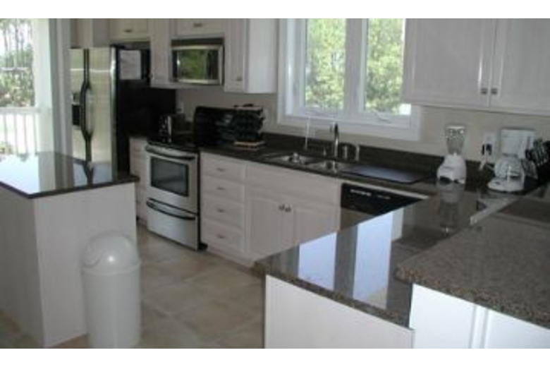 This house sleeps twelve people comfortably and offers a living area with ocean view, DVD player, surround sound, and a TV. The kitchen is fully equipped with microwave, dishwasher, coffee maker, and refrigerator with ice maker. Four bedrooms each have a queen size bed and the fifth bedroom has two sets of twin bunk beds. There is also a TV in three of the five bedrooms and a DVD/VCR in the bunk bed room. Other amenities include an outdoor pool, ceiling fans, and covered parking.Surrounding Description