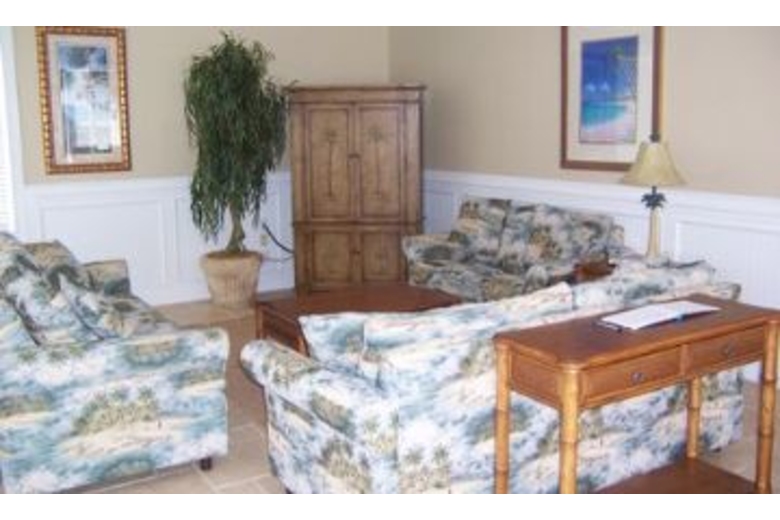 This is a five bedroom, five bath house that sleeps thirteen people. There are two bedrooms with a king size bed, two bedrooms with a queen size bed, and one bedroom with a full/twin bunk bed. In the living area you will find a queen sofa sleeper, DVD player, and a TV. The kitchen comes fully equipped with everything you need for cooking and dining. There is seating for ten in the dining area and there is also seating available at the kitchen breakfast bar. This unit has tile flooring in the living, kitchen, and dining areas and carpet in the bedrooms.Surrounding Description