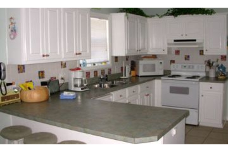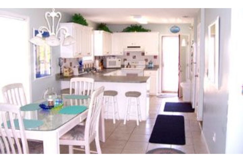 This house has three bedrooms, two bathrooms, and accommodates up to six. Cook your favorite meals or whip up a quick snack in the fully equipped kitchen. The dining area offers seating for four at the dining table and four at the kitchen breakfast bar. The living area has cozy furnishings, a TV, and a DVD player. There is a king bed in the master bedroom, a queen bed in the second bedroom, and a double bed in the third bedroom.Surrounding Description