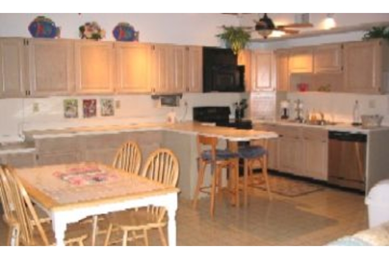 The living area in this unit has large windows to enjoy the view and comfortable furnishings. There are three TV's, a VCR, and a DVD player in the home. The floor plan in open and spacious. The master bedroom has a king bed, and a private bathroom. The second bedroom also has a private bath and boasts a queen bed. The third bedroom has two twin beds. The kitchen has an open feeling and has a dishwasher. This home has a washer and dryer and a gas grill. There is a bait table and a bait freezer also.Surrounding Description