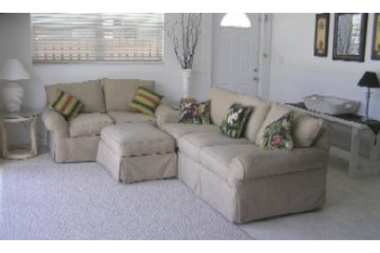 The kitcen in this home has great appliances, nice lighting, and a island bar with two barstools. The living room not only has a fantastic view of the outdoor pool and canal, but has cozy sofas and nice decor. The master bedroom is bright and has a king bed. The second bedroom has a queen bed and the third bedroom has two full beds. There are many amenities including washer and dryer, bait freezer with ice maker, and much more.Surrounding Description