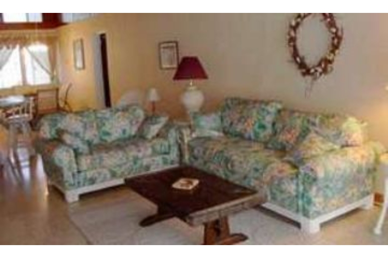 The living room of this home has nice sofas and great decor. The kitchen is well equipped, and has a dishwasher. The mster bedroom has a king bed, and the other bedrooms have queen beds. There are three TV's, a VCR and a stereo. Enjoy the comforts of a bait table, and central air, along with many other upgrades.Surrounding Description
