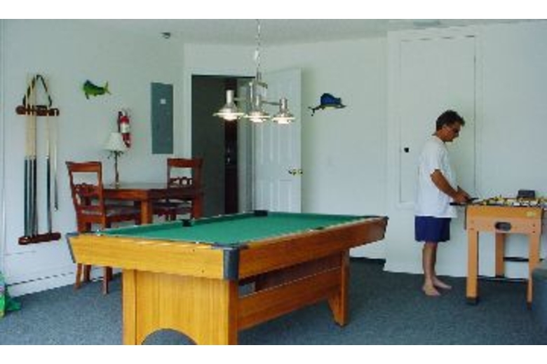 The spacious and beautifully decorated living/dining room has a convertible queen-size sofa bed and a fully-equipped entertainment system. Leading from the living/dining room is the upgraded and fully-equipped kitchen, which includes a ceramic top range, side-by-side refrigerator/freezer, dishwasher, garbage disposal, and microwave. Along with a convenient breakfast bar with bar stools and separate breakfast nook for informal dining with a view of the pool. A separate laundry room with a washer and dryer, iron and ironing board are located just off the kitchen area. If this is not enough, the garage has been converted to a carpeted game room complete with a pool table, air hockey, foosball, TV and PlayStation 2. The game room also has a child-size sofa and a table with bar stools for the grown ups.Surrounding Description