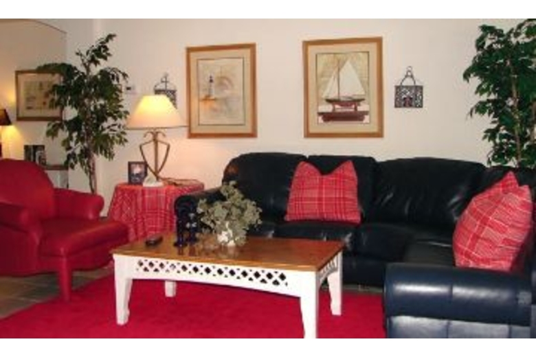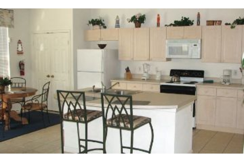 This beautiful home provides sleeping accomodations for 7 people. Your twin master suites each have king size beds and soft pillow top mattresses, which are more comfortable than your favorite hammock. What a way to recover from your day's journey! You will also find a bedrooom with two twin beds. You will enjoy looking at your private covered lanai from the oversized family room, which features a 55-inch TV. The cottage has three full baths for the comfort of your crew. Located in the Wyndham Palms Resort Community you will find all of your needs from security to recreation in one happy place! You may dock your vessel up and never set sail again! This is truly what makes a special vacation package!Surrounding Description