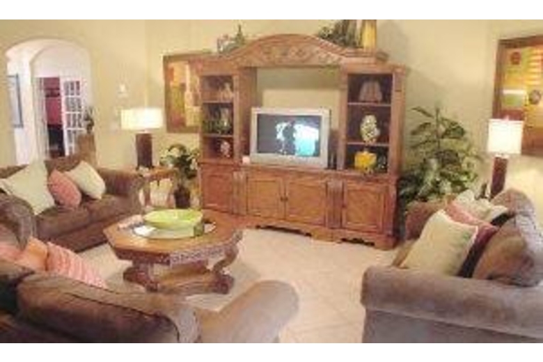 Contemporary style 5 bedroom/4 bathroom in the luxurious gated community of Emerald Island. Three master en-suites, and 2 twin bedrooms will sleep up to ten people. You will have a nice tan in this south facing pool which faces a conservation area. Great privacy and tons of fun for the kids with an air conditioned that includes air hockey and pool tables.Surrounding Description