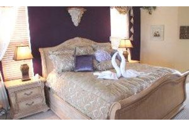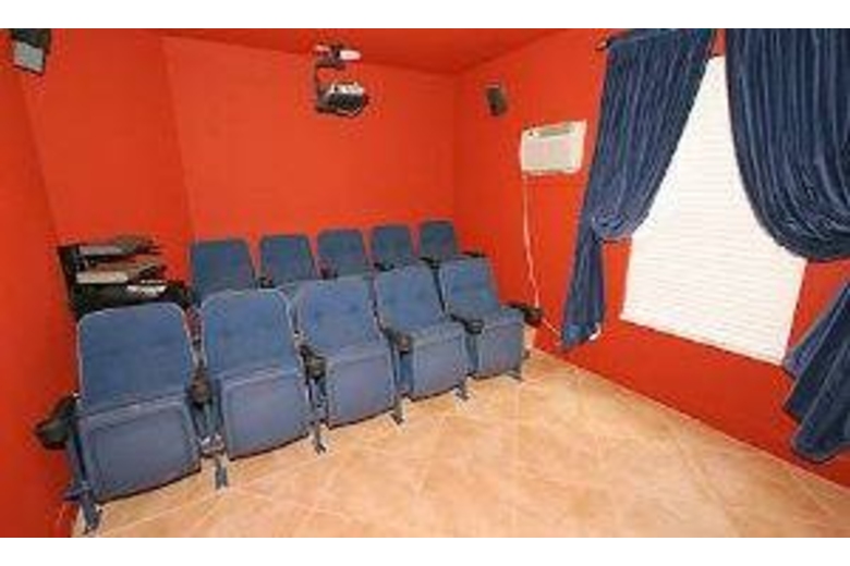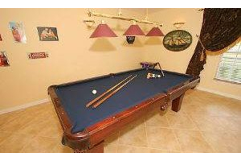 Imaginewatching a movie in your very own 10 seater theater!! Well imagine no more asthis amazing home has a theater and much, much more. Enjoy a swim in this hugepool facing the lake and play pool in your gameroom. Exercise bike in the cornerfor your peace and quiet while burning the vacation pudge! Three masteren-suites and bunkebed room for the kids! This home is fully quipped with all ofyour needs. Just remember to bring your toothbrush!Surrounding Description