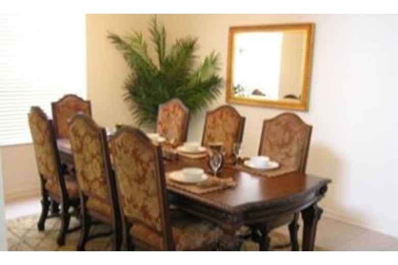 The home can sleep 10 comfortably. There are many extras, including free unlimited long distance throughout the US and abroad. There is a large screen TV and additional TV's/DVD players in each bedroom. It features a fully equipped convenient kitchen. The private, screened-in pool and spa can be heated for an additional charge upon request.Surrounding Description