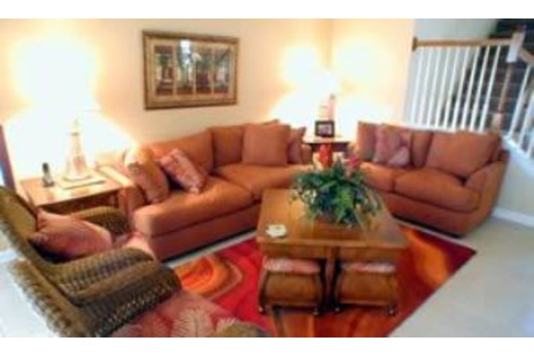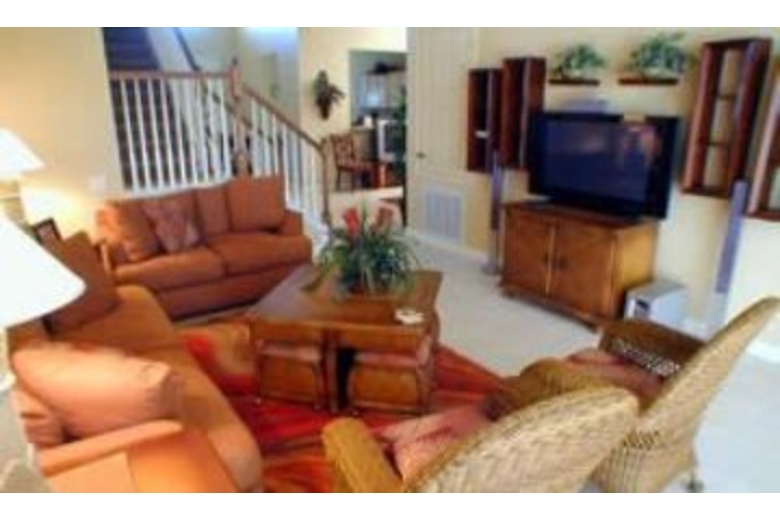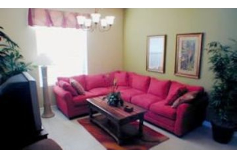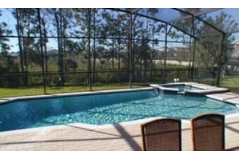 There is a fully screened private pool with spa, as well as a removable safety fence. This house borders the conservation area for extra privacy, with upgraded outdoor furniture. The great room is perfect for watching your favorite shows on the plasma TV and Sony Dream surround sound. The sofa has a queen hide-a-bed. There is a fully equipped gourmet kitchen with adjoining dining room. The sleeping accommodations include two master suites with king-size beds and walk-in closets. There is a third master bedroom with queen size bed. The fourth and fifth bedrooms have two twin beds in each. The Mickey Mouse bedroom has a trundle bed . All bedrooms have their own bathrooms and cable TV.Surrounding Description