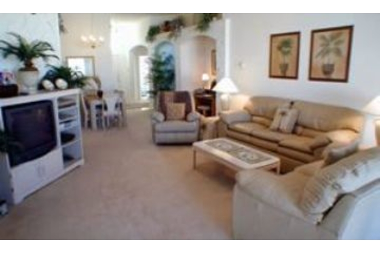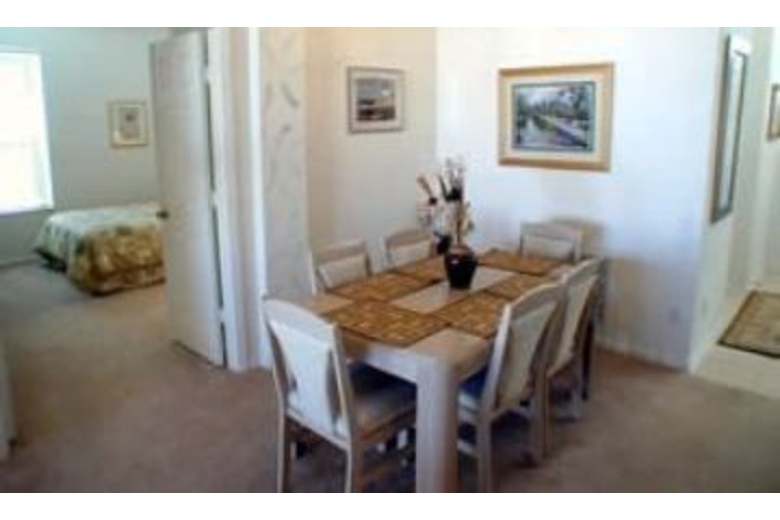 This home has a private screened-in pool, hot tub, and patio area right outside the glass-sliding door. The fully-equipped kitchen includes a dishwasher, garbage disposal, microwave and much more. The dining area seats six in comfort at the table and an additional four in the breakfast nook (overlooking the pool). There also is a breakfast bar which has three stools. There is patio furniture for dining by the pool. There are child alarms fitted at all doors leading to the pool area. For your convenience, a portable crib, highchair, stroller, and some pool toys are provided at no extra charge.Surrounding Description