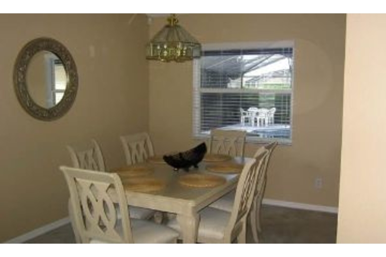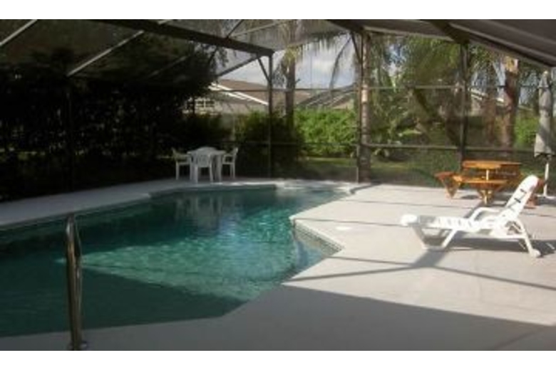 Stay in this great home that features a family room, full kitchen, and dining room with wood floors. Lounge around in the plush living room with your guests or watch a movie in the family room with popcorn popped in the microwave. The spacious kitchen is equipped with all amenities and looks out on a beautiful large screened in pool that has wide decking and a lanai. A large back yard with many trees creates a private oasis of your own. Some great extras that are available are pool toys, games, laundry facilities, DVDs and a stereo. This home also is equipped with full laundry facilities.Surrounding Description