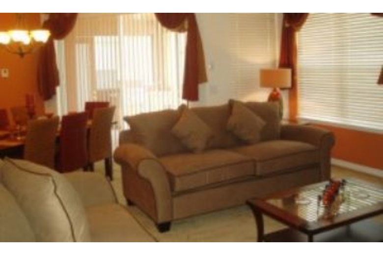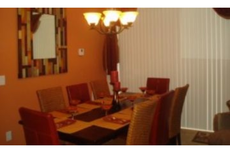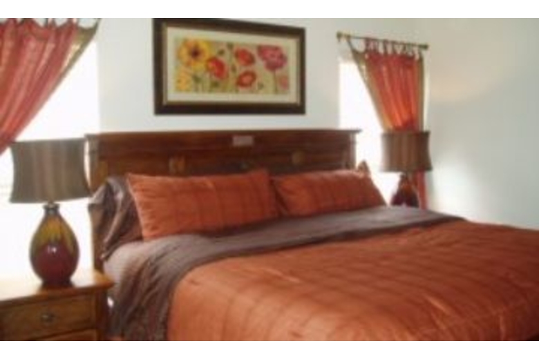 You will appreciate the spaciousness and lavish furnishings of this vacation home rental. The living room boasts of beautiful furniture where you can spread out and have a conversation with family and friends. In the family room you will enjoy having a family movie night with the big screen TV. Prepare meals easily in a kitchen that comes fully equipped with a stove, refrigerator, dishwasher and microwave. The master bedroom boasts of a king size bed with orange and brown tones that make this room comfortable.Surrounding Description