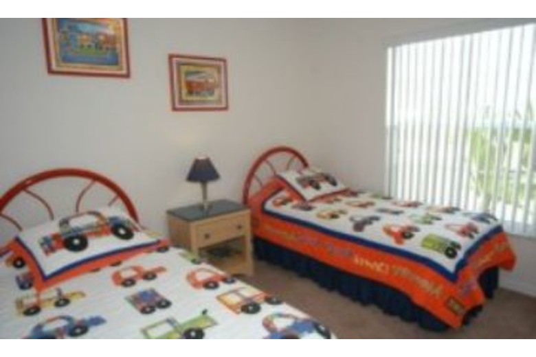Spend a wonderful time with your family in this fabulous home. The living area is comfortably furnished and offers ample seating for the whole family to enjoy each other’s company. The kitchen is fully equipped and offers a breakfast bar. The dining area features a matching table. This home features three bedrooms. The first bedroom features a queen bed with a palm tree theme. The second bedroom makes you feel like you’re at the ocean and offers a queen in shell bedding. The third room is perfect for the kids and offers two twin beds in car bedding. Relax outside and enjoy a dip in the poolSurrounding Description