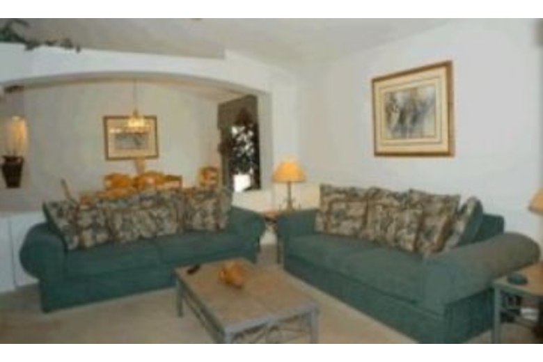 Step into this inviting home and feel at comfort during your busy week. The living area is elegantly furnished. The kitchen is fully equipped and the dining area offers a beautiful wood table for the family to enjoy. This home features three bedrooms. The first two rooms offer cozy queen beds. The third room features two twins. The pool area gives fabulous sunset views with the light sparkling over the large lake.Surrounding Description