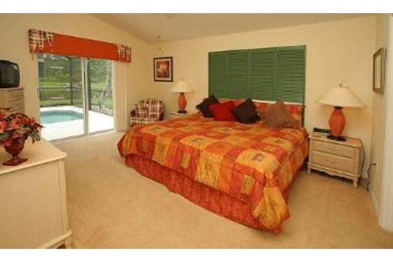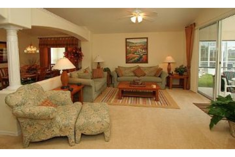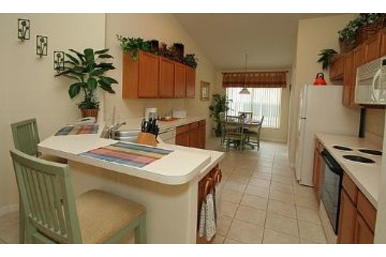 This four bedroom and two bathroom home is spacious with modern decor and furnishings throughout. Bedding consists of a king in the master, a double in the first guests bedroom and two twins in the other two guests bedrooms providing accommodations for up to eight people. The beautifully appointed living room offers a relaxing environment and a place to enjoy entertainment with the TV, DVD player, or stereo. The large kitchen has everything you need for everyday living include a breakfast bar with stools, all major appliances, beautiful tile flooring, and plenty of counter space. There is excitement for everyone in the game room located in the garage where you can enjoy a game of Foosball or challenge a family member to a game of ping pong. Other incredible amenities this home offers include air conditioning, a washer and dryer, and Internet access. Step out onto the patio and take in the warm Florida breeze while watching the birds land upon the lake that is just twenty feet away.Surrounding Description