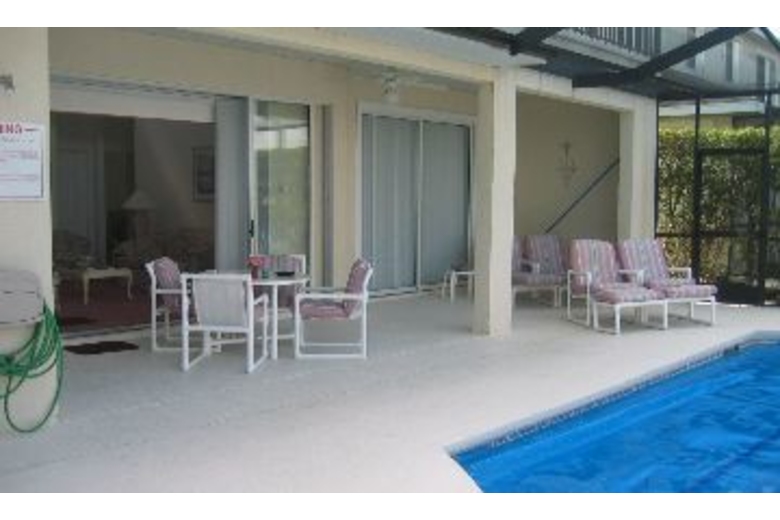 Fantastic, lakefront, 2700-square-foot, executive home. Large lanai with triple glass sliding doors, ample patio furniture, and private pool with waterfall. Located in a peaceful gated community designed around two lakes, three-and-one-half miles from Disney World.