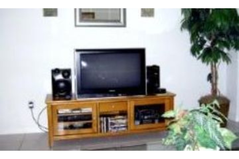 The fences on both sides of the pool area will make the pool and spa use more private. The basketball and tennis courts are located directly behind property. There is a TV/DVD in every bedroom, and a free DVD library with many movies. A cable system with DVR lets you record your favorite TV shows while enjoying the parks, and view them later when you return. There are also two stereos; the speakers can be moved to the pool area for your listening enjoyment - just bring your favorite CDs. In addition, you'll enjoy free long distance service to: USA, Canada, Puerto Rico, Spain, UK, Ireland and Italy. All of the bedrooms have hardwood floors. The open space in back of the house is large enough to play baseball or soccer.Surrounding Description