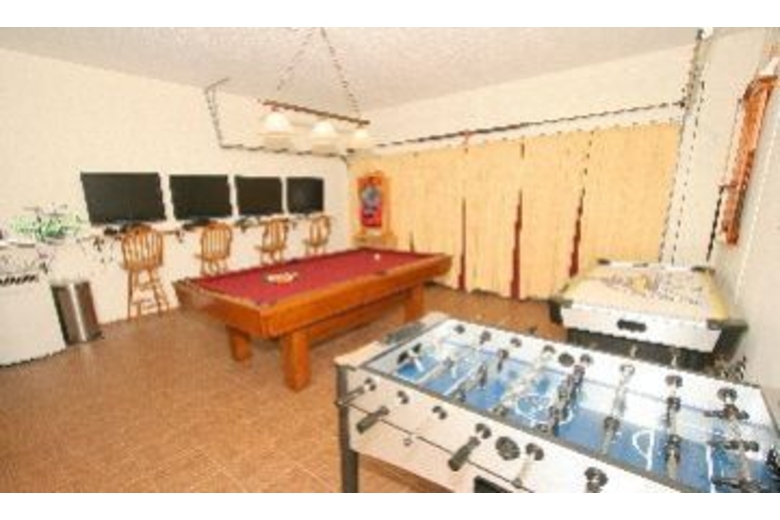 The villa has 7 bedrooms, 5½ bathrooms and it will comfortably sleep 14 - 16 + 2 baby cots. It is of the “Palm Harbour” design built by Park Square Homes to a very high standard. All bedrooms have adjoining bathrooms with Masters 1-3 having private and the other 4 each sharing facilities with one other bedroom. The bedrooms are divided into four Master Kings/Queens and three twin rooms. There is also the ULTIMATE games room complete with a pool table, air hockey, fooseball, pachinko machines, Xbox 360's live and system linked, 56" HDTV with DISH HD Satellite and much more besides.Surrounding Description