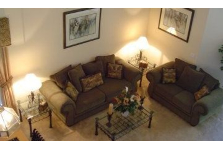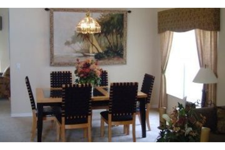 As you enter the home you will be entering the living room which has a couch and a love seat with a coffee table and end tables with lamps. This room connects to the dining room which has a large formal dining table with seating for six. The master bedroom has a great tub for you to enjoy! Remember that this home provides plenty of towels (bath, hand and pool) and each bathroom has a hair blow dryer. For the little ones and of course their parents convenience, we also have two pack n' plays, two high chairs, one booster seat and two double strollers, so there is no need to bring yours.Surrounding Description